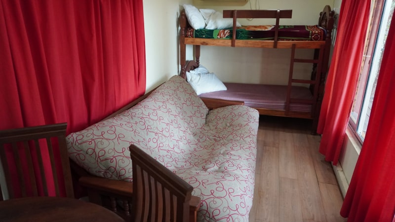 Dormitorio con guardador, con cama camarote para 3 personas de 1 plaza cada una.