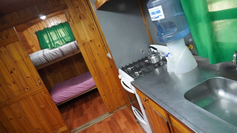 Cocina/comedor con heladera/freezer, cocina TV LED con Direct TV (crédito a cargo del huésped), dispenser de agua potable de 10 litros y pava eléctrica.