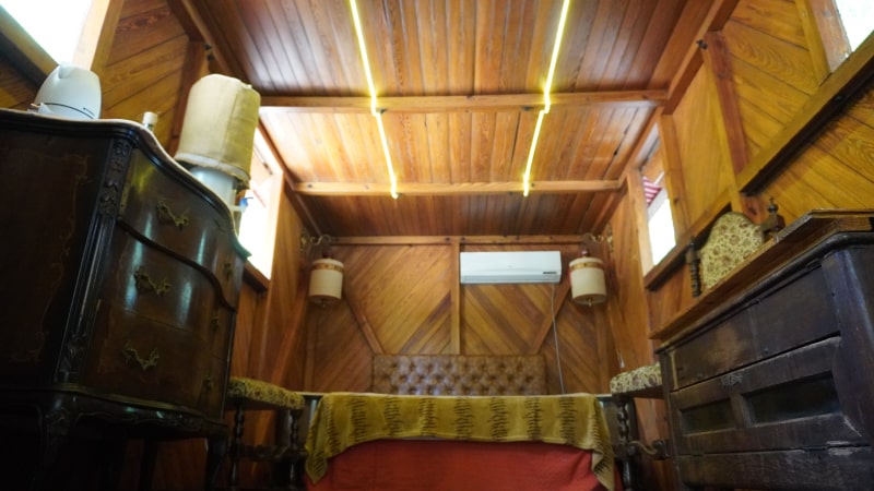 Cama matrimonial, cama cucheta para 2 personas, 2 camas individuales, 2 sillones de reposo. Espacio de guardado.